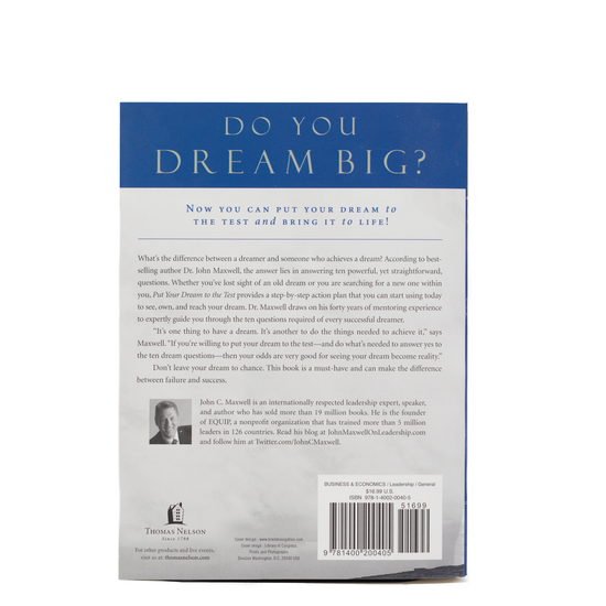 Do you have the courage to chase your dream? Put Your Dream to the Test provides a step-by-step action plan that you can start using today to see, own, and reach your dream. Dr. John C. Maxwell draws on his 40 years of mentoring experience to expertly guide you through 10 questions that must be answered to make the leap from dreamer to achiever. This concise, practical, and actionable book will help you pursue your dreams with clarity and intentionality.